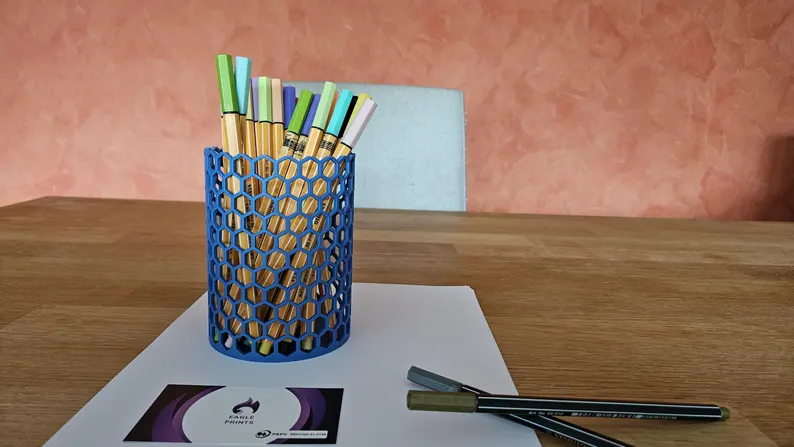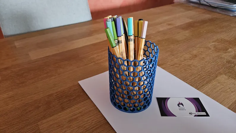 Dieser Stiftehalter im Wabendesign kombiniert modernes, luftiges Design mit hoher Stabilität. Die sechseckige Struktur sorgt nicht nur für einen coolen Look, sondern macht den Halter auch besonders robust und leicht. Ideal für Büro, Homeoffice, Schule oder den Kreativbereich – und in vielen Farben erhältlich, damit alles perfekt zusammenpasst.